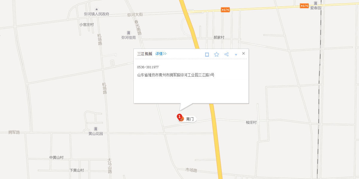 立即咨詢(xún)青州市三江機(jī)械有限公司坐落于中國(guó)北部的花木之鄉(xiāng)——山東省青州市,風(fēng)景優(yōu)美,交通便利,人杰地靈。